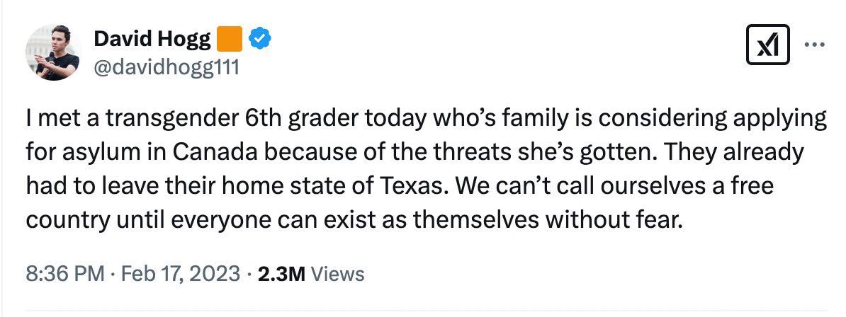 The star, their Great White Hope, their version of the “bro-whisperer” to bring in the young people is David Hogg, mass shooting survivor turned activist influencer.