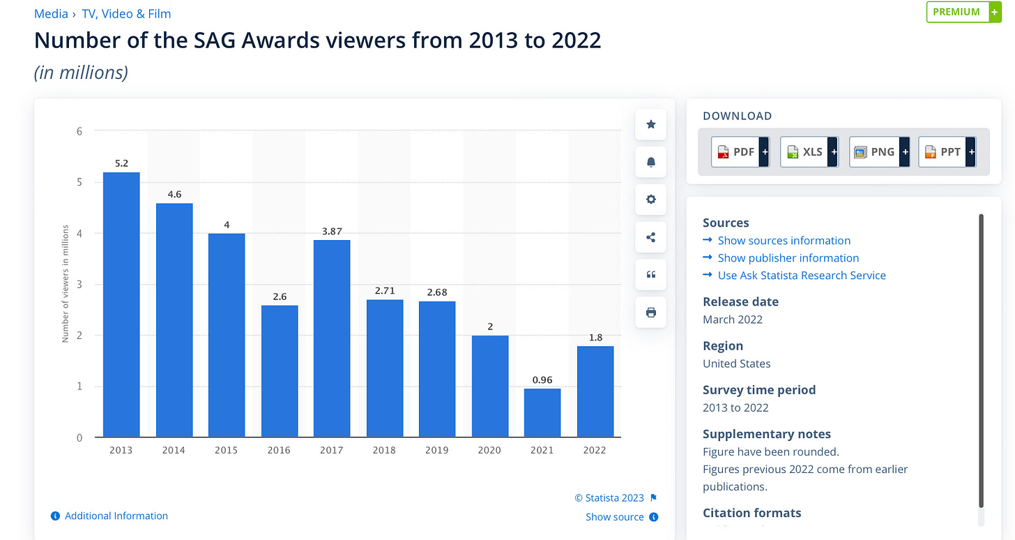 The SAG awards have just announced they’ll be moving to Netflix. Their press release made sure to point out how now they could be watched by people all over the world. They don’t really want to broaden their reach and appeal to the other half of America they abandoned long ago. If ratings don’t matter, the public doesn’t either.
