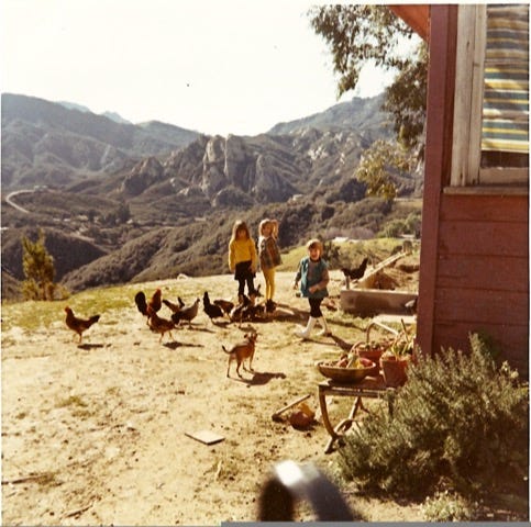 Our lives were full of the riches of the natural world - riding our ponies through the firebreaks, digging in the dirt, helping our mom with the chickens and goats, and not coming inside until long after dark. That world would come to an end with a new boyfriend who would move us out of Topanga and through a series of suburban neighborhoods in central California. We watched our ponies driven away in a horse trailer and couldn’t stop crying about it for a year.