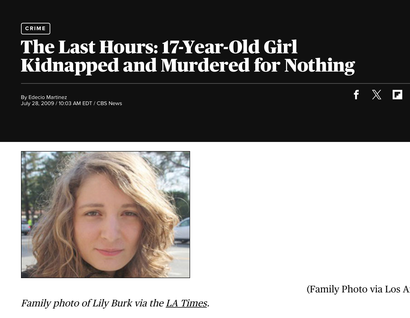 What prompted me to tell her that was the story of Lily Burk from 2009. She was the daughter of a progressive Liberal who helped her mother feed the homeless in Los Angeles. She attended one of the expensive, fancy private schools I could never have afforded for my daughter. One day, Burk wanted to practice driving, so her mother sent her out to run some errands.