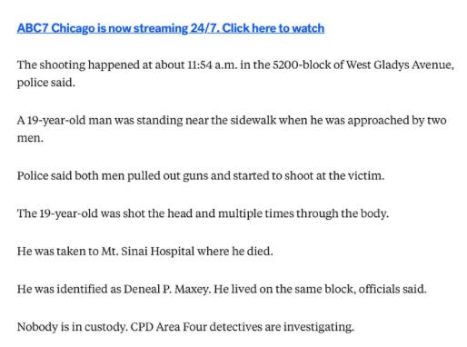 How about this shooting, captured on Facebook Live and viewed by millions in Chicago:
