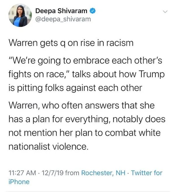 The piece details their complaints against Warren with all the fake authority of your typical Tumblr tween, throwing out the word “problematic” several times. Their complaints against Warren read like a typical “cancel” for the woke: