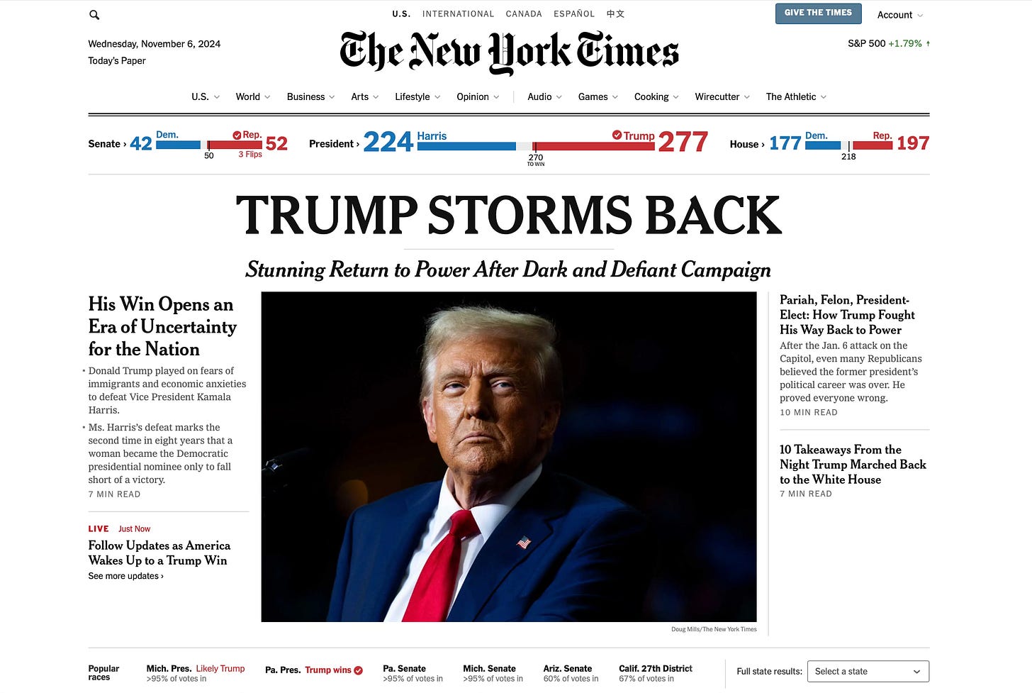 The New York Times headline, “Trump storms back,” is designed to pander to those who are still stuck on January 6th.