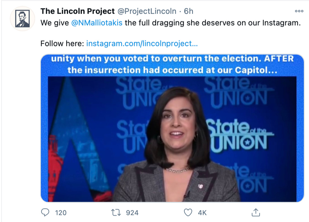 This is only the beginning of what promises to be a long and painful witch hunt that will play well on Twitter but turn off the majority of Americans who are not sitting on a pile of millions like the Lincoln Project people are. The Democrats have a job to do and that’s to put the country back in order. The Conservatives in the Lincoln Project liked it better when they had the upper hand and Democrats were not in charge, no matter what they’re saying now. They are conservatives in their hearts, which means they are not going to want the policies the progressive left are about to push for.