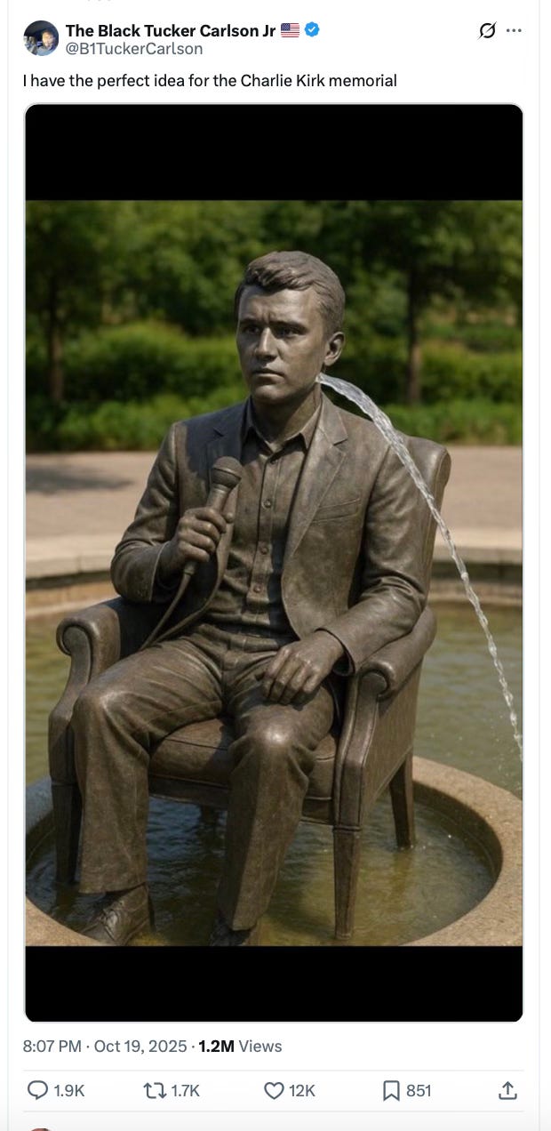 That is about as funny as the Manson murders. Charlie Kirk was a funny, humble, and nice guy. He didn’t take himself seriously. By contrast, MAGA makes fun of people who do, and that is funny: