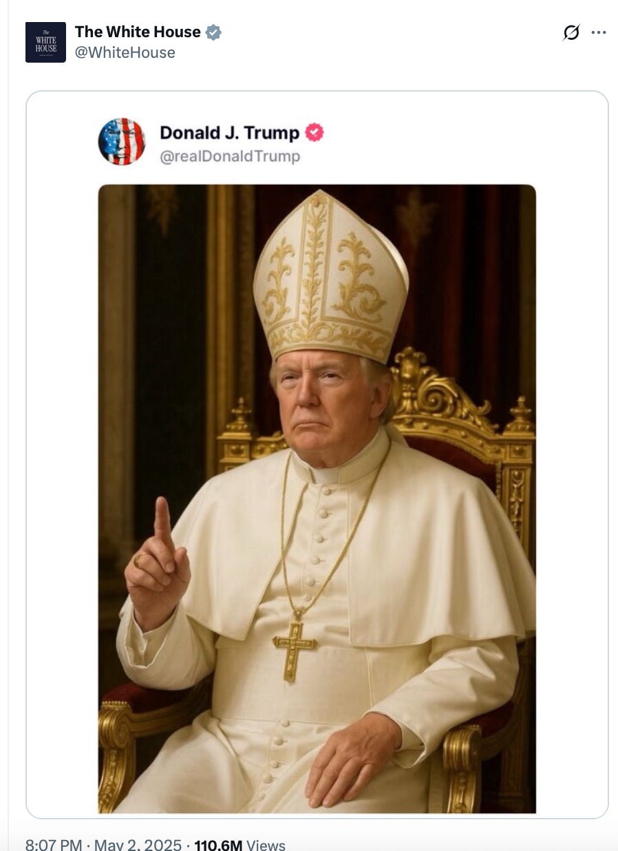 Maybe it’s Trump as the Pope, as if to say, “pull my finger.”