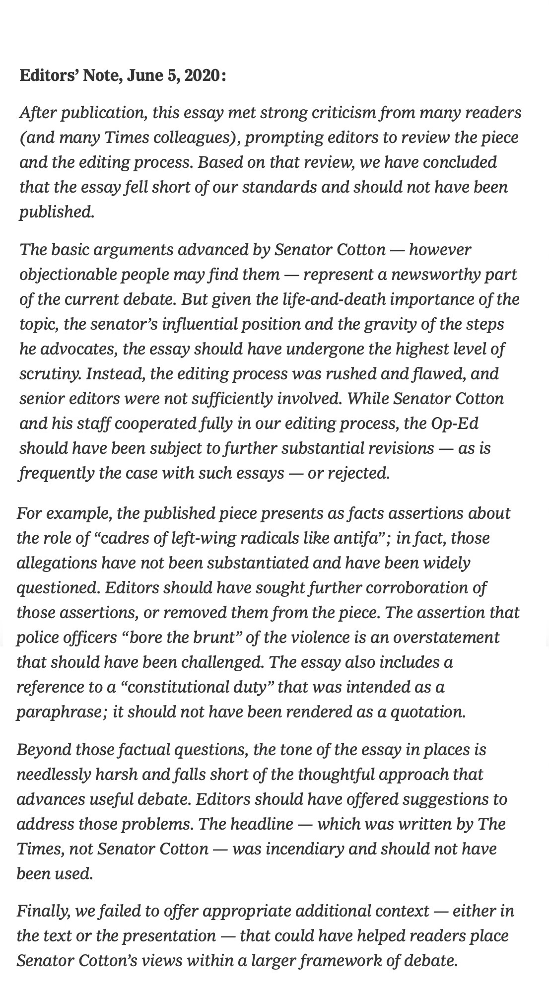 Even now, the evidence is laid bare - the cringeworthy apology to readers for the words by Tom Cotton that were HARM: