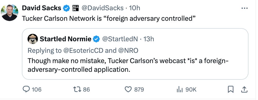 And David Sacks points out, in no uncertain terms, what’s coming next: