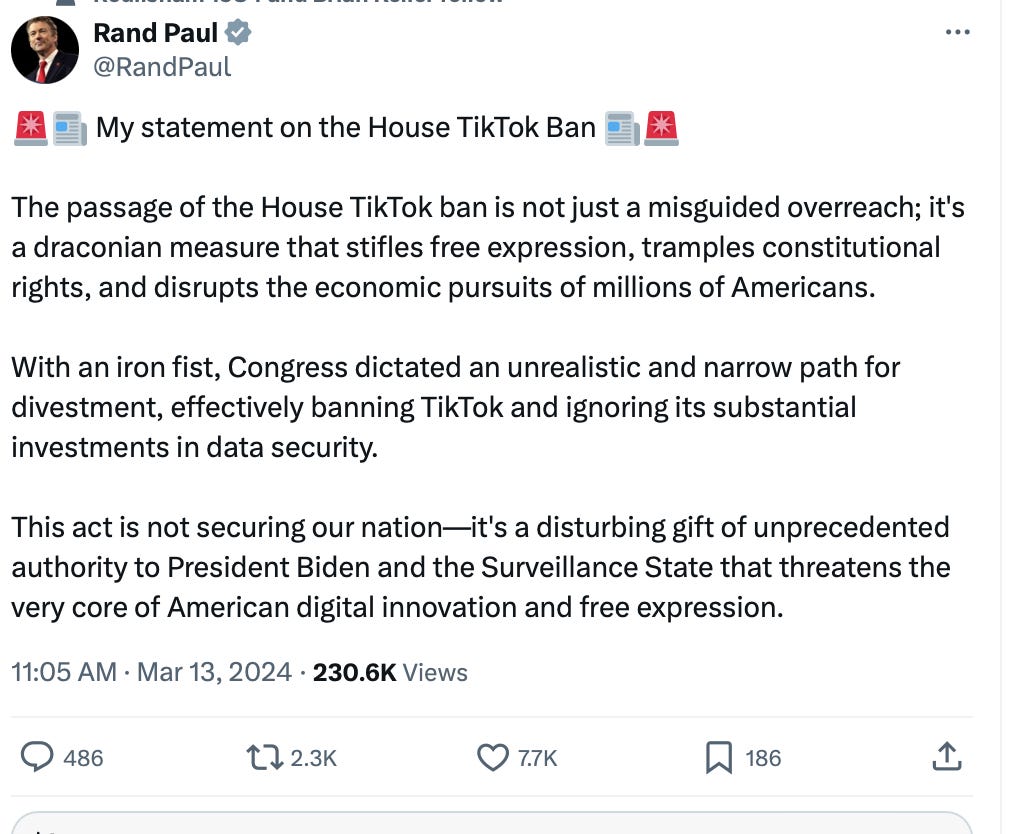 Banning TikTok, they say, isn’t censorship, but how can it not be? Here are Tucker Carlson and Rand Paul wondering the same thing: