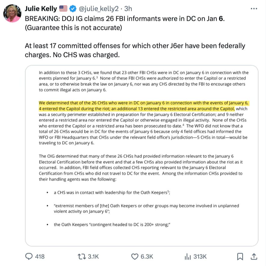 Oh I'm SURE the FBI had NOTHING to do with creating January 6th. Nothing to see here!