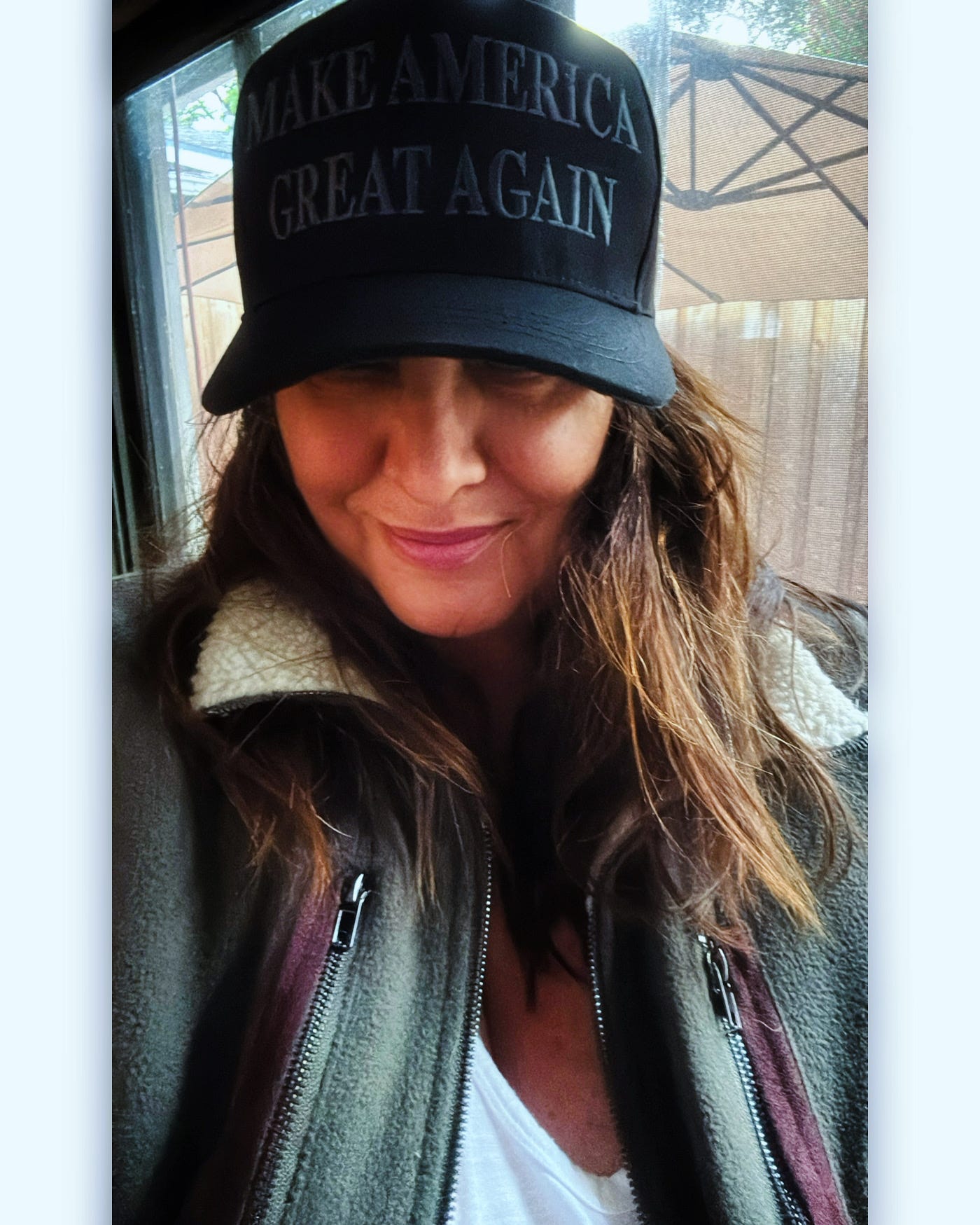 So here is me in my MAGA hat. My dark MAGA hat to tell you thank you and godspeed, MAGA. Godspeed. Trump2024.