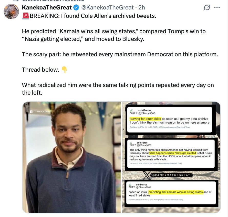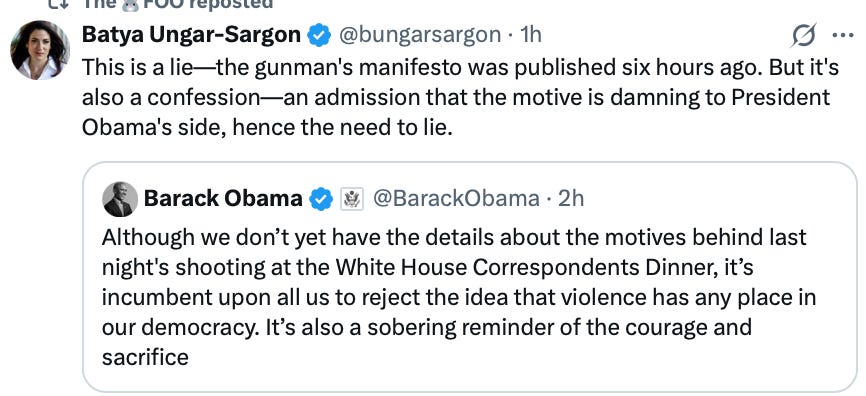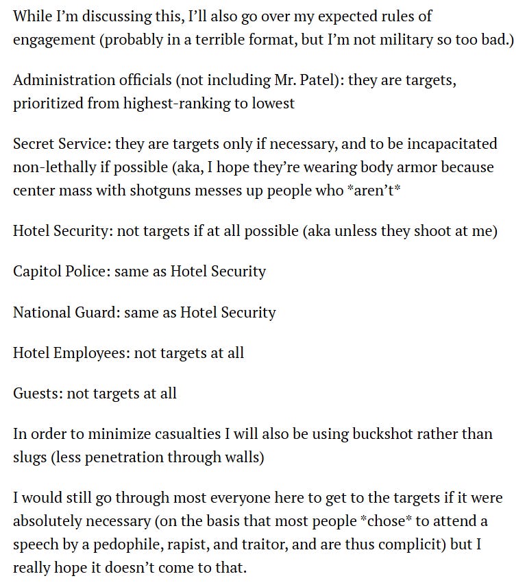 Cole Allen, who is Trump’s third would-be assassin, like Luigi Mangione and Tyler Robinson, is not a madman, not like the shooter who murdered Melissa Hortman. He wasn’t hearing voices. He wasn’t suffering from PTSD. He made a sober and calculating decision to do what so many have been begging “someone” to do ever since Trump won.
