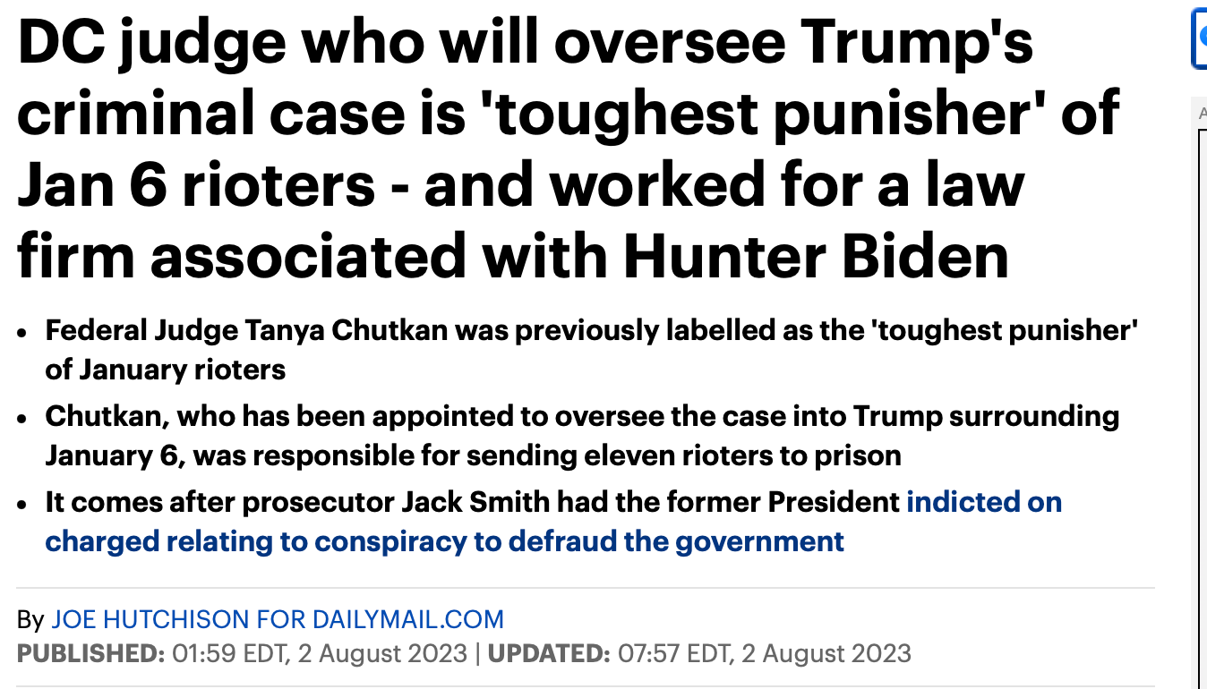 Of course, Judge Tanya Chutkan was tough on the Jan 6ers. She, like so many in America, who still trust mainstream media to tell them the truth [insert loud guffaw here] had already convicted the Trump supporters long before they showed up at the Capitol to “stop the steal.”
