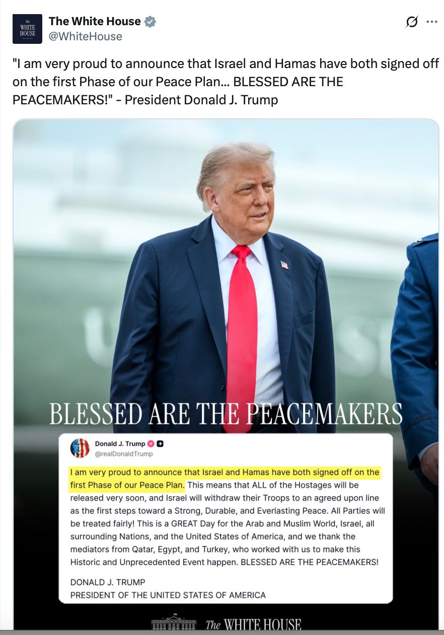 The second phase will be the more difficult part of this mess, but this is good news, right? Trump is expected to fly to the region over the weekend. He is making the most of his one term, that’s for sure. Never in my life have I seen a president do more.
