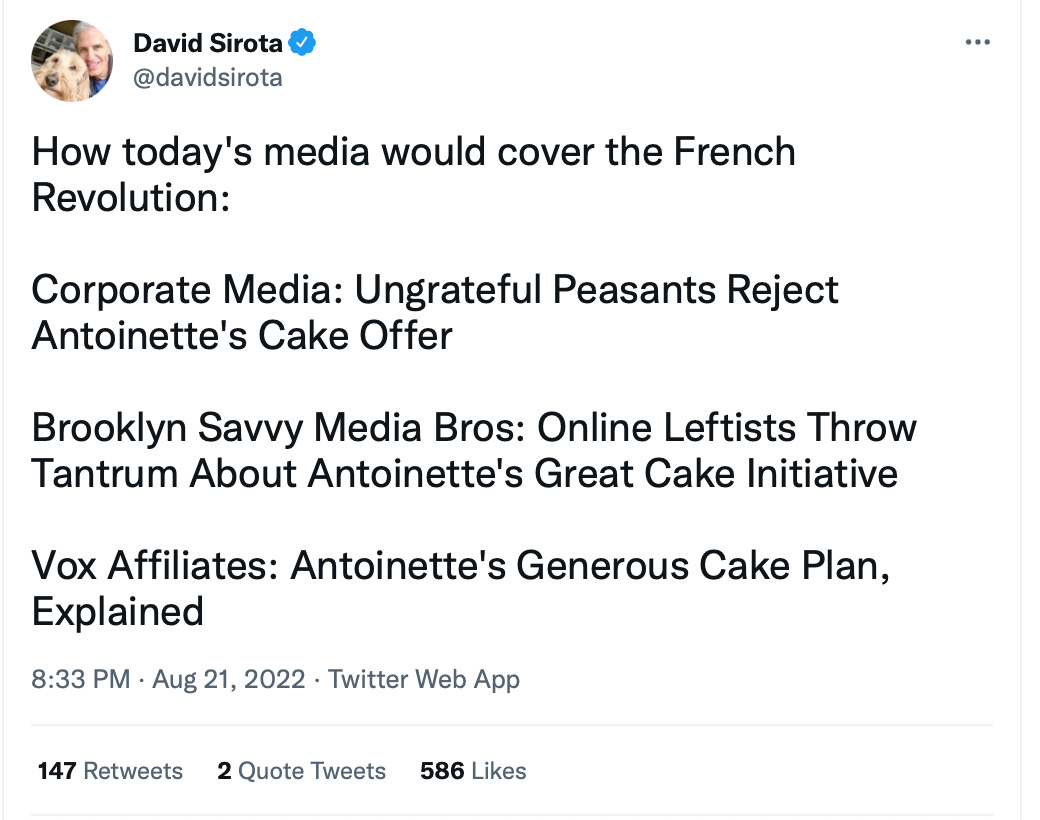 The problem is that these are not two equal sides. 65% of Twitter users are Democrats. The platform increased by 21% after Trump was banned. The media listens to Twitter; the Democrats listen to the media. Together, they have built an insular feedback loop that is increasingly out of touch with most Americans outside of it.