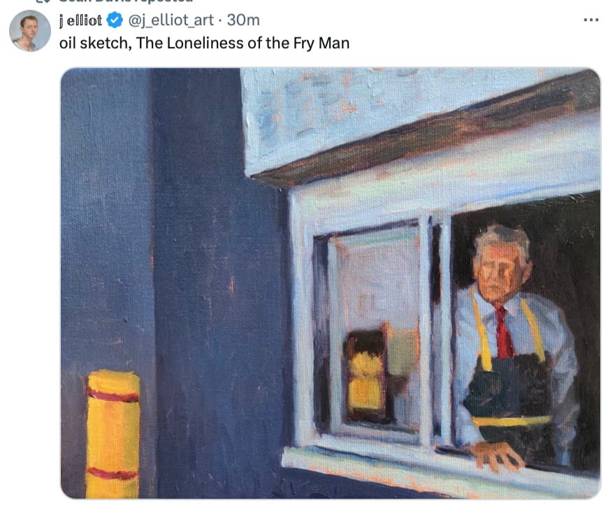 When Trump visited McDonald’s in an arranged photo op on Sunday, he put on the uniform, made fries, handed them out to his supporters, and won the day, and the news cycle. It humanized him. For some, it might have even broken the spell. Maybe they saw Trump's compassion. Maybe they saw how nice he was to the employees. Maybe they started to thaw out a bit where Trump was concerned.