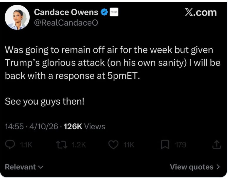 In case you didn’t know, all hell has broken loose on X, YouTube and the “podcast space” as they call it, with a full blown war raging between those on the anti-Israel side, chief among them Crazy Candace Owens spinning one wild tale after another, with very few people wanting to stand up to her or call her out lest she turn her crazy mobs of devoted psychopaths back on them.