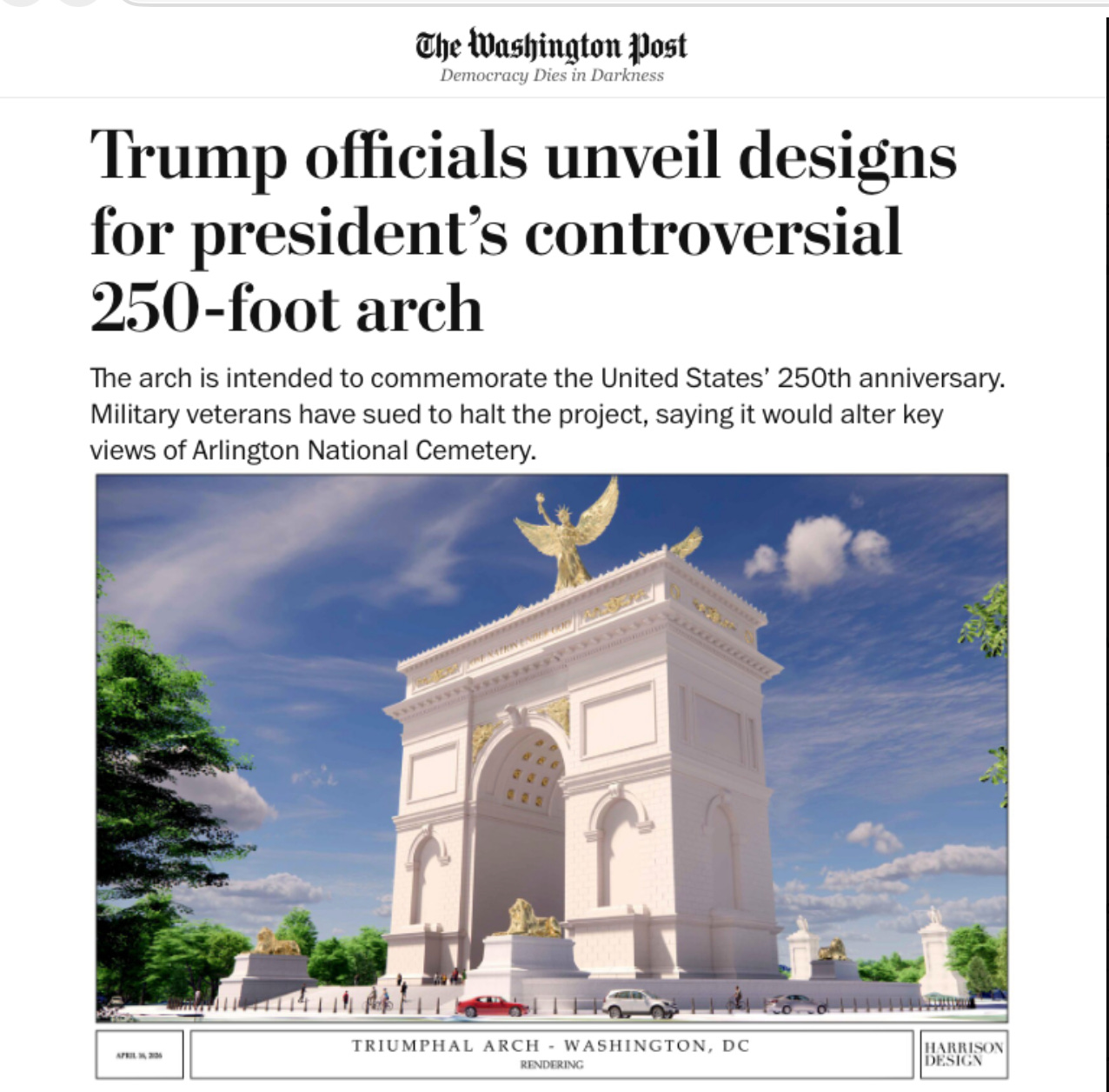 The Arch D’Trump has been unveiled - and there is probably zero chance this actually gets built, and if it does, the Democrats will demolish it once they take back power. They’ll be cosplaying Berlin after the fall of Hitler.