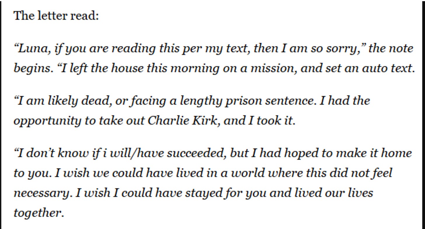 Meanhile, Candace has never looked more foolish than she does today as the story has broke that a note written in Tyler Robinson’s handwriting admits guilt: