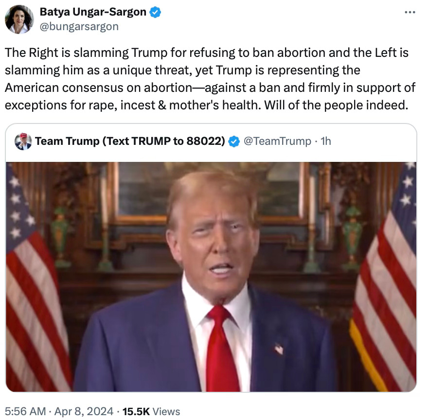 Trump’s announcement of his support of IVF and abortion (exceptions for rape, incest, and the life of the mother).