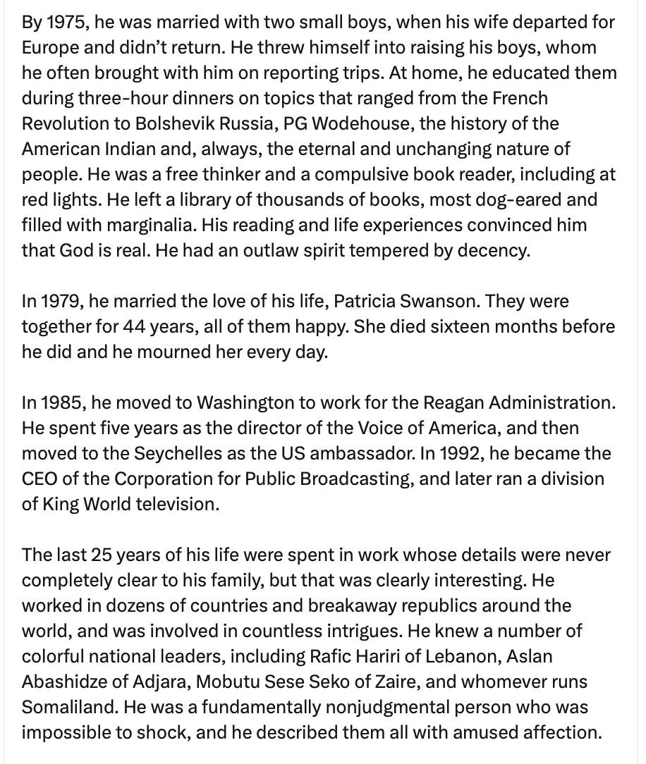 What an incredible bio, and of course I heard it in Tucker's voice. I wish him, his family, and all his father's friends comfort and peace.