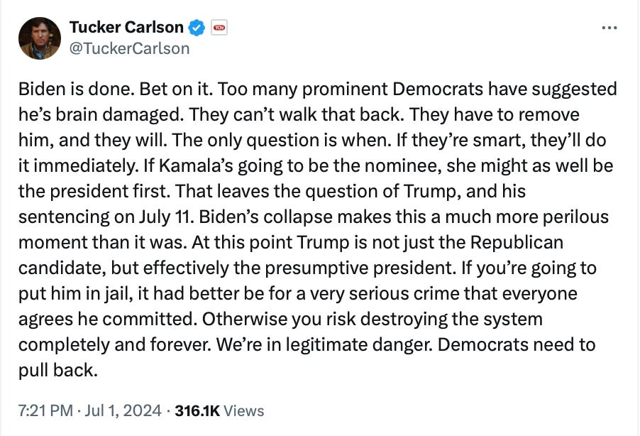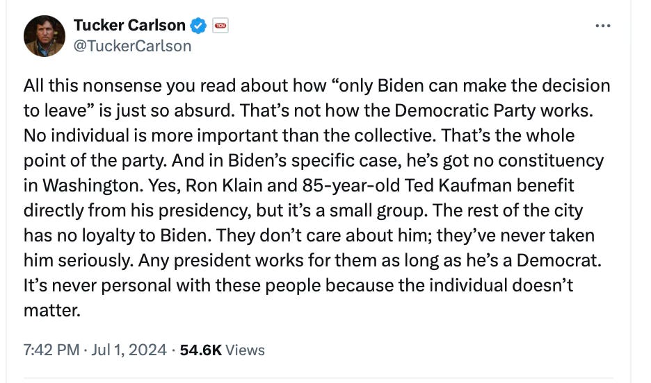 You can opt out of the Tucker drops in your settings, top right. I provide these for my subscribers who do not use social media and miss Tucker Carlson after he left Fox.