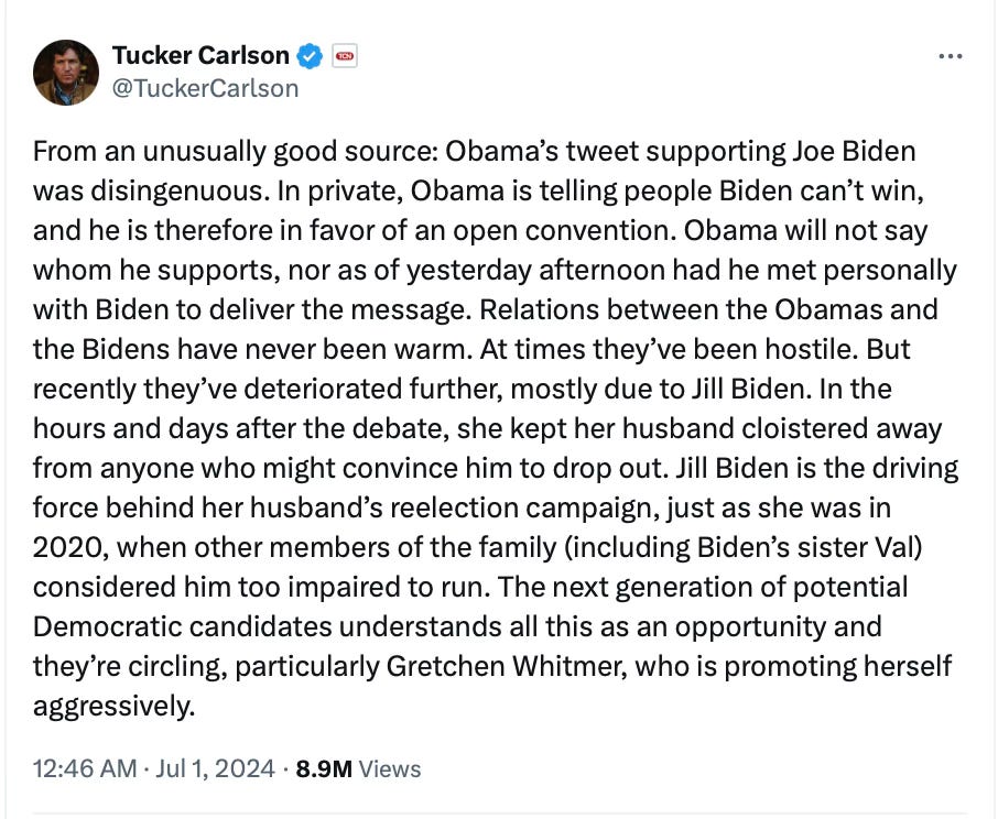 Here are three tweets from Tucker today you might like. He doesn’t often tweet, hardly ever, but he’s making an exception in this case.