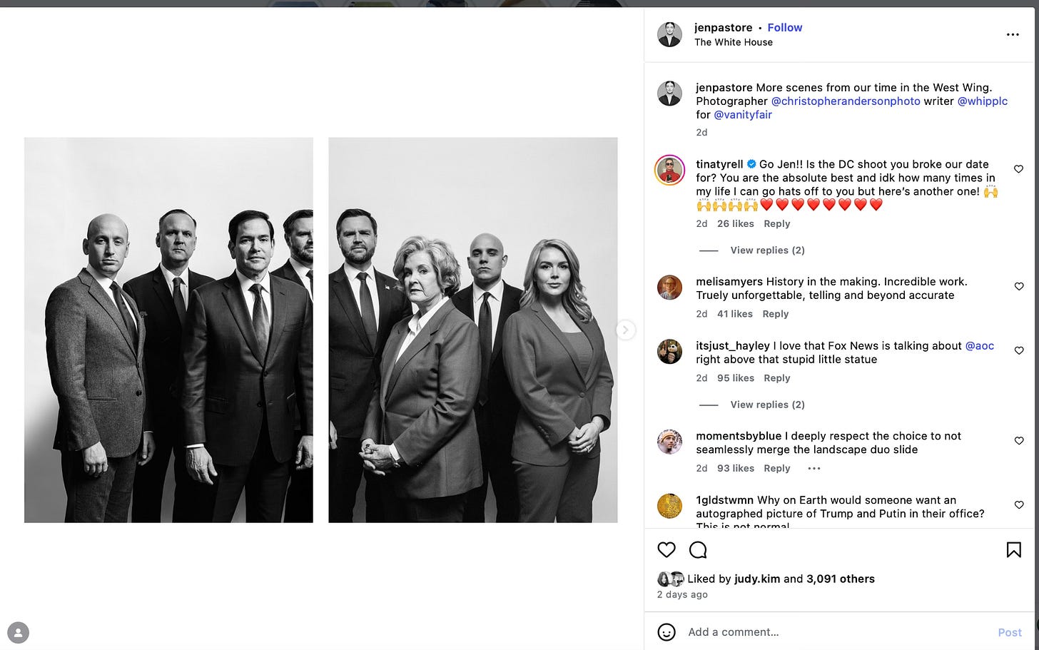 Only a white woman and a gay man could have come up with the Vanity Fair photo shoot that made Susie Wiles look surprised and confused, as if to say, “What am I doing here?” JD Vance as the villain in a superhero movie, obliterating his glittering aqua eyes because those make him look too good. And depicting Marco Rubio tipping over as though all it would take is a gentle push, and down he goes.