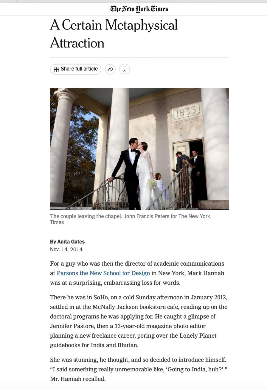 Back in 2014, the New York Times covered her wedding to Mark Hannah: