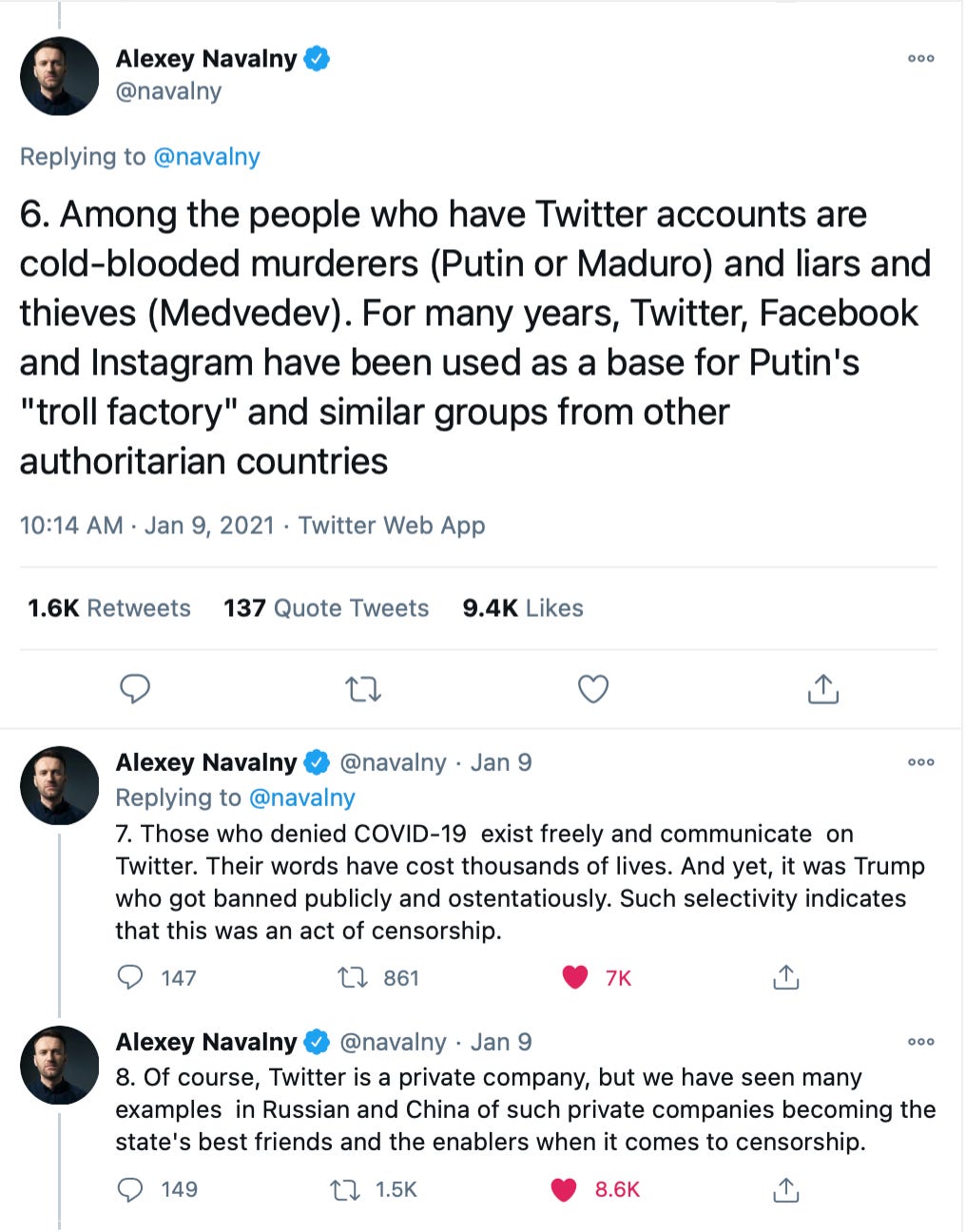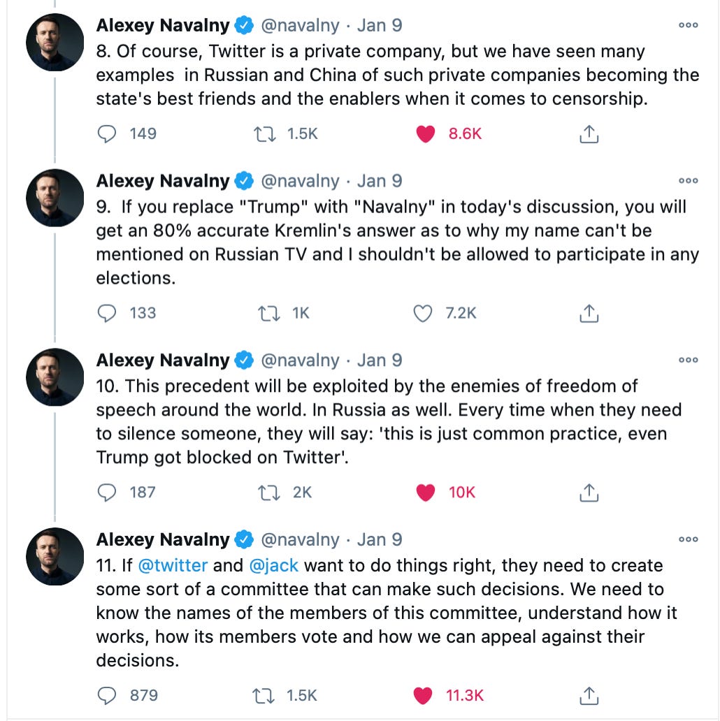 Another interesting article! A couple of thoughts - I agree it was foolish and cowardly for Twitter to do this now. That's the difficulty with having different standards for public leaders and the public. Many of his posts violated the rules in ways that would have gotten any of us kicked off permanently. Maybe a commission is necessary, or maybe they should just consistently enforce their standards.