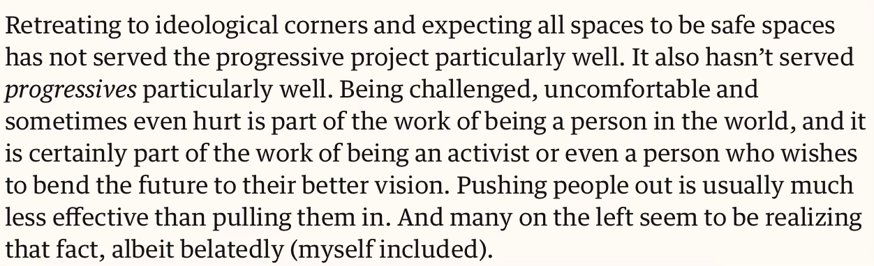 I always thought the people I called my heroes were made of tougher stuff. Better stuff. Kinder stuff. I always thought my side was the side of the good guys who would be immune to group dehumanization. I also did I think we would ever be the ruling class aristocracy sneering at the middle and working class, gathering all of our culture, wealth, and institutions, and hogging them for ourselves.
