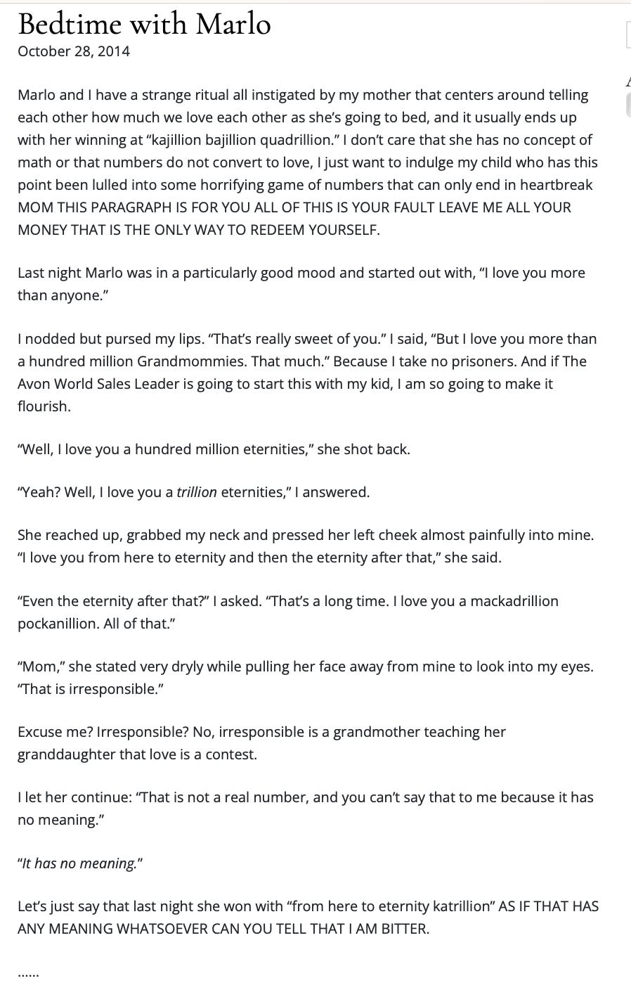 But Heather left her daughter, and countless other girls a precious gift: a trail of breadcrumbs back to the real Marlo. It’s all there. The photos, the smiles, the stories, years and years of history - once a mommy blog, now an archaeological dig, a historical record of what really happened in the life of a young girly girl with curls, dimples, and a lisp.