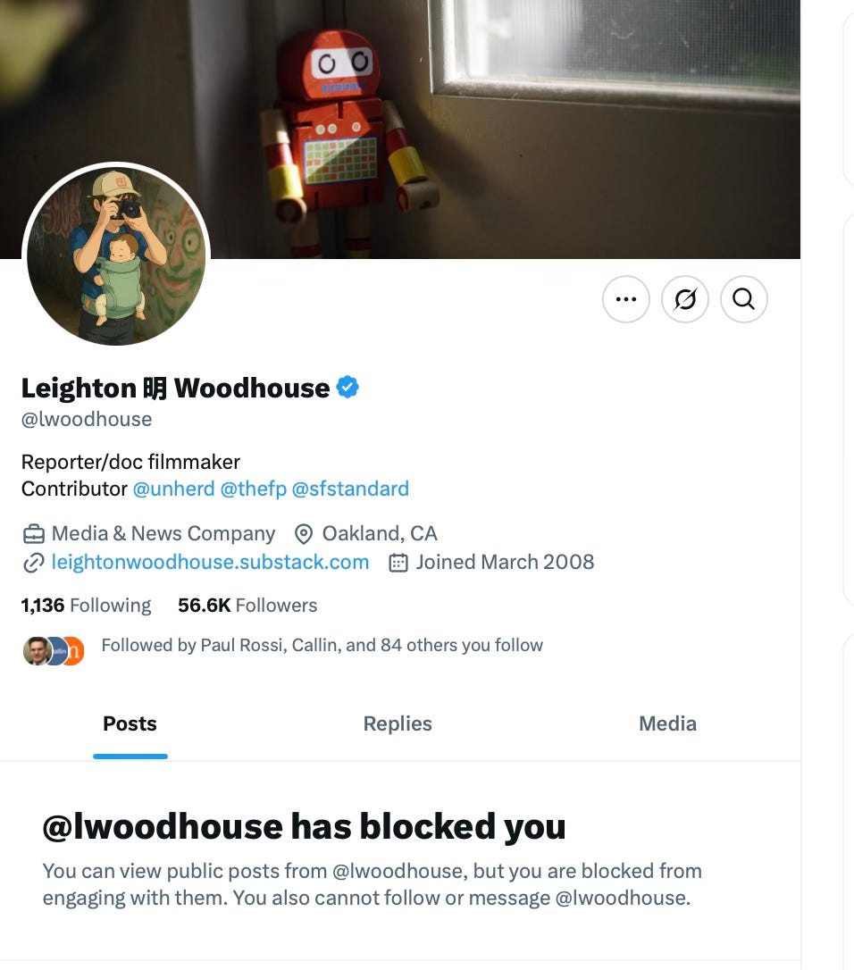 I am not here to judge Leighton Woodhouse’s motives. He seems like a decent and honest person to me. I had not heard of him until he wrote a hit piece about Matt. He did, for whatever reason, block me on Twitter. I made him angry enough at one point to do that, though I have no memory of it.