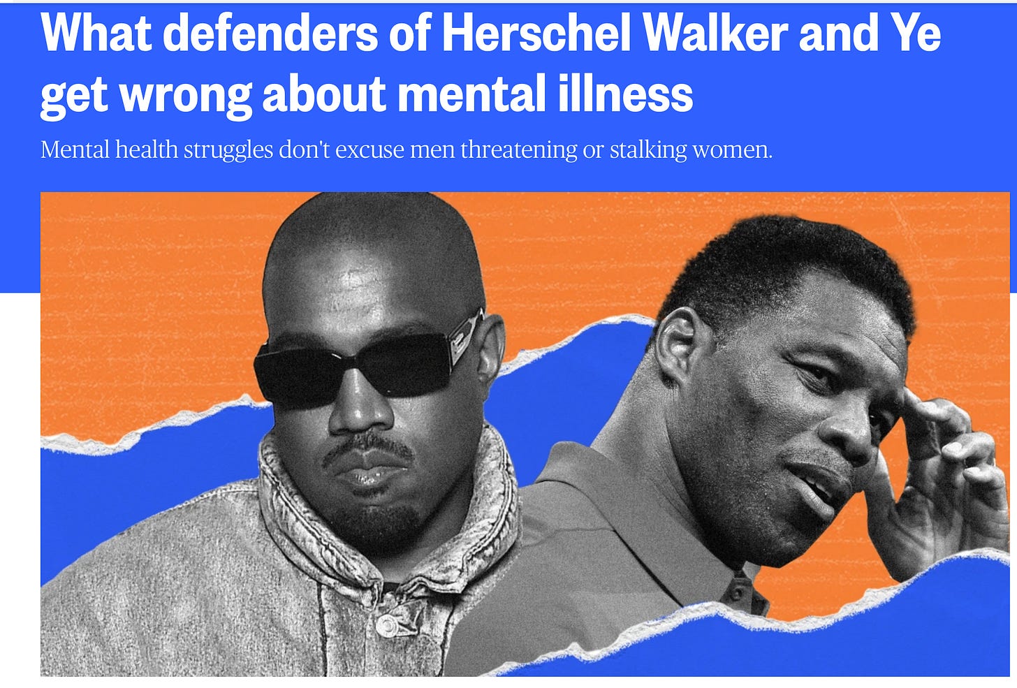 But just because they both support Trump, are Black, and have struggled with mental health issues does not make them the same. Ye’s overt antisemitism and self-destructive behavior are the opposite of what Walker is doing now. He’s running for the Senate and might win. And yet, in the eyes of the Left, he is disposable.