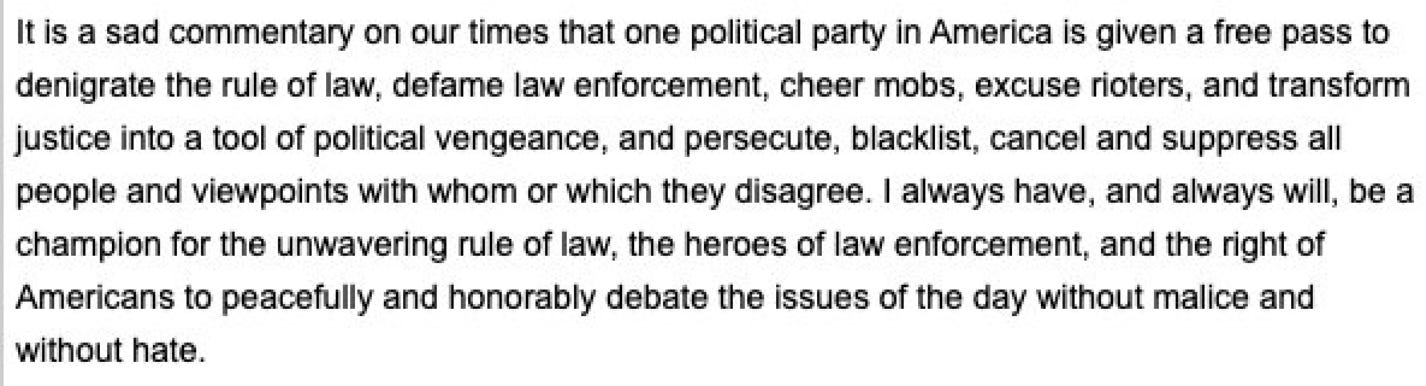 Right now, that is being given over almost completely to Trump who has found his fight late in the game. His America First agenda is no longer against foreign leaders or immigrants or anything else - it is aimed squarely at the massive movement on the left right now that is shaping America’s past, present and future. Trump is “bad” so America is “bad.” Here is what Trump wrote in his statement after his acquittal: