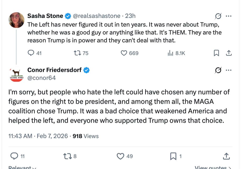 After Memegate went viral on Friday, the usual battle in our virtual Civil War raged on. I had this exchange on X and was answered by Conor Friedersdorf: