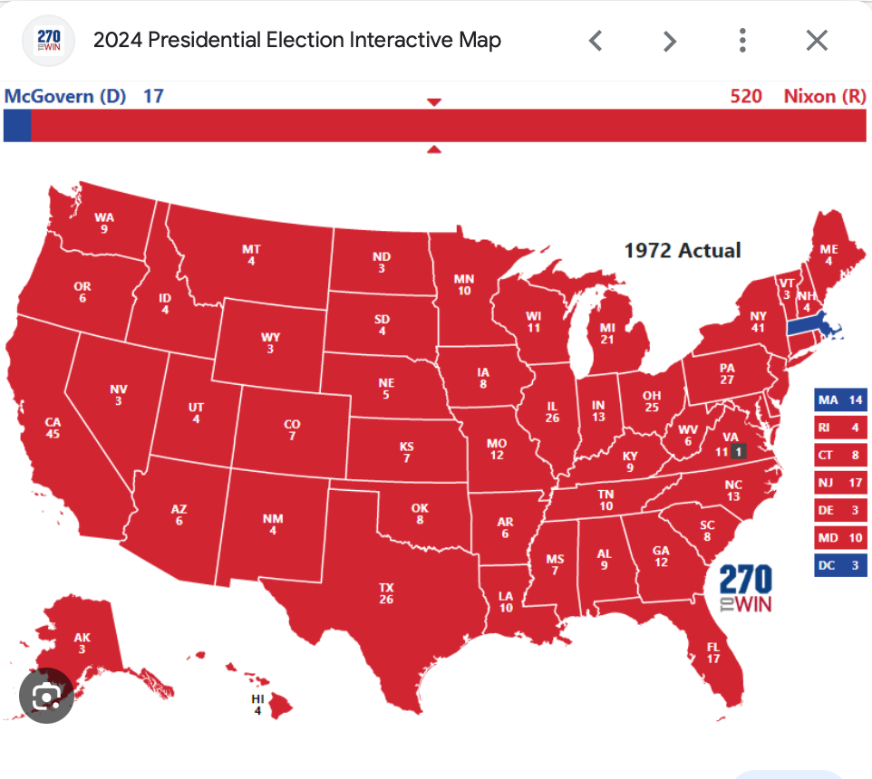 To Democrats, the memory of 1972 remains an enduring nightmare. Nixon won every state but Massachusetts. Watergate handed the Democrats one more chance in 1976 to address the needs of the people. They failed, still trying to sell their utopia.
