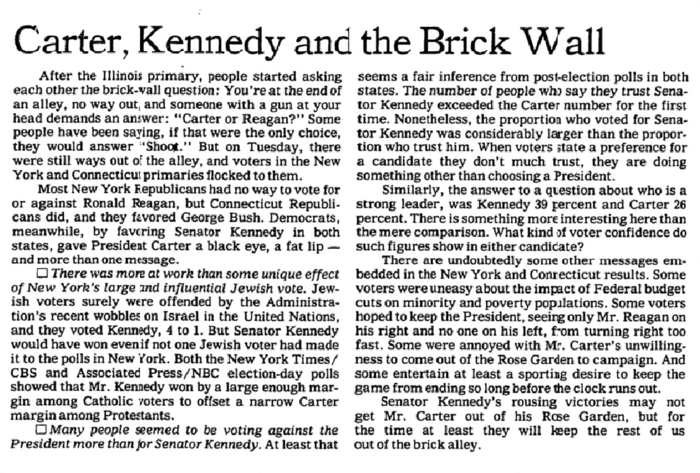 Even with a Kennedy looming on the horizon like a harbinger, Biden would never see himself as another Jimmy Carter. Trump isn’t Reagan, he no doubt assured himself, even as he trails Trump in the polls.