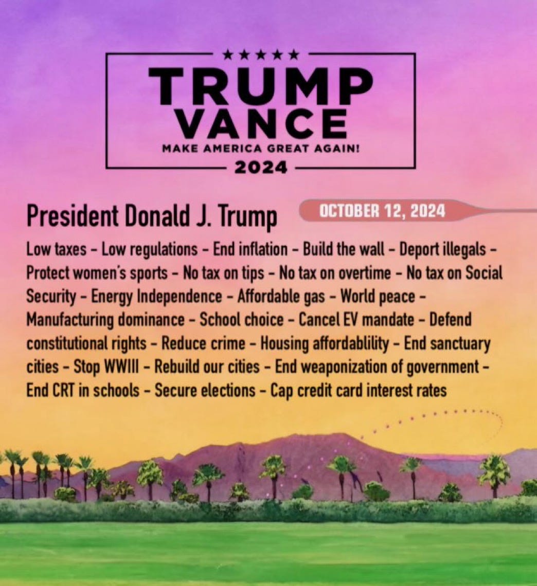 I would have voted for Trump just on the lawfare alone, but a funny thing happened in the past few months. Trump built an unprecedented alliance with RFK, Jr., Tulsi Gabbard, Vivek Ramaswamy, Nicole Shanahan, and Elon Musk. It was more than I could ever imagine would be on offer in an American election.