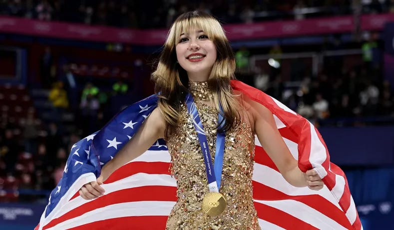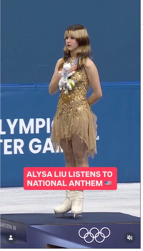 Alysa Liu has an unusual story. Her father, Arthur Liu, was a Chinese dissident who fled China after the Tiananmen Square massacre. He moved to the United States at 25 and worked as a busboy until later becoming an attorney. So you bet this guy will make sure his skating whiz puts her hand on her heart when they play the National Anthem.