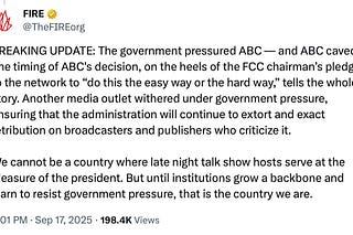 Just to be clear: I don’t think the Trump administration or any president should be pressuring the networks to fire people.